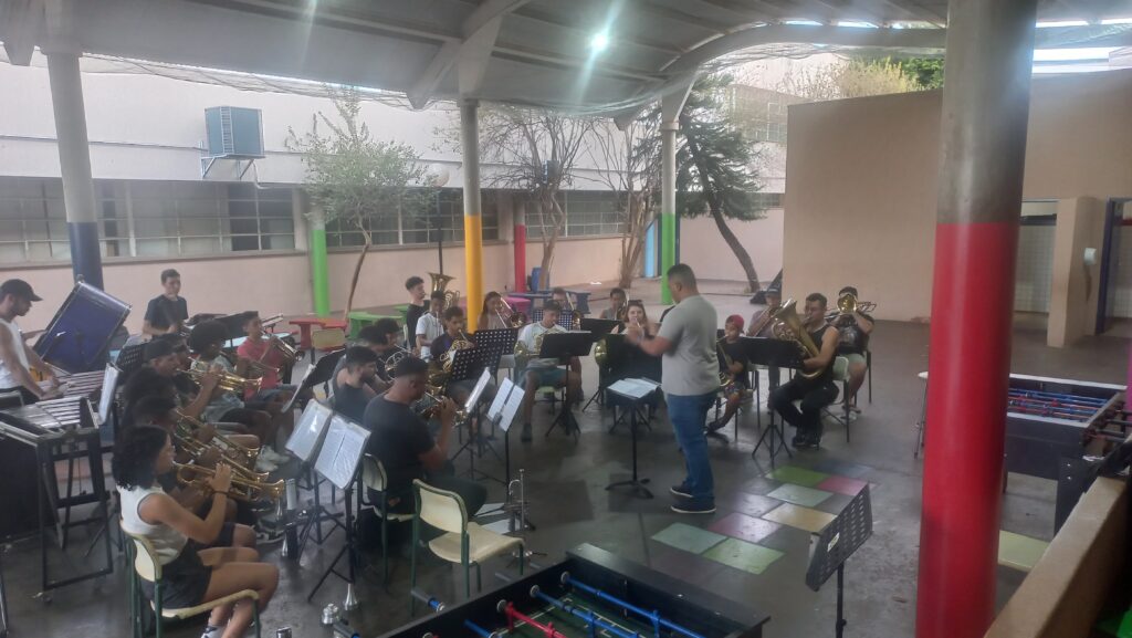 Neste dia, tivemos a honra de receber a visita do nosso músico Miguel Liporaci, que compartilhou seu conhecimento e entusiasmo com os integrantes da BMAG, contribuindo de forma significativa para o fortalecimento do aprendizado e da prática musical.